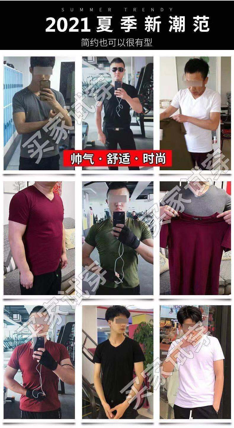 3vyy新款时尚短袖纯色男式V领半内衣内衣T恤衫体袖冰丝身体修复T恤1/